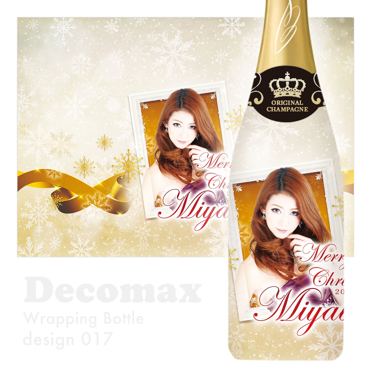 写真や名前を入れて作る、360度フルラッピングのオリジナルシャンパン。