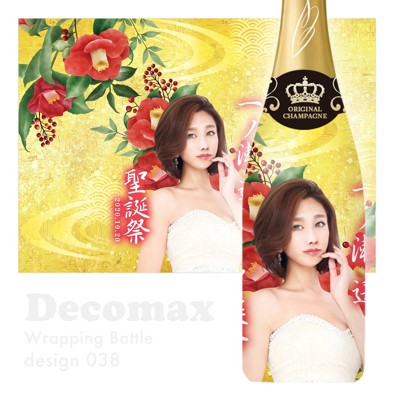 写真や名前を入れて作る、360度フルラッピングのオリジナルシャンパン。
