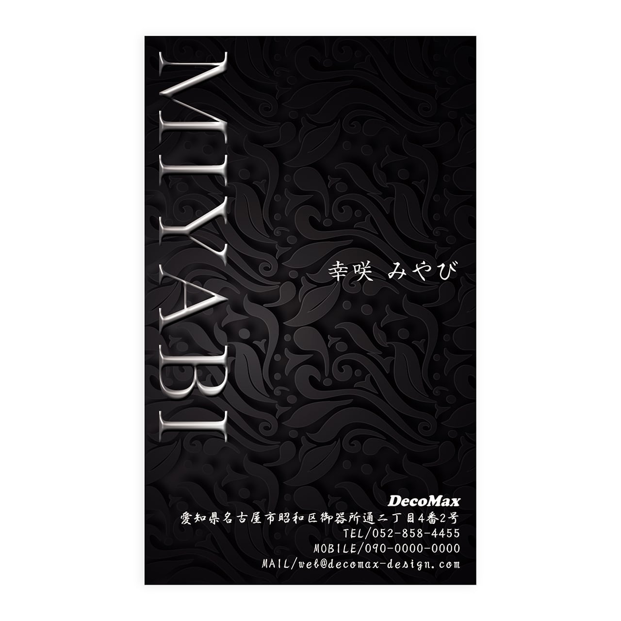 お名前、住所、ロゴマークなどを入れて名刺を作成いたします。
